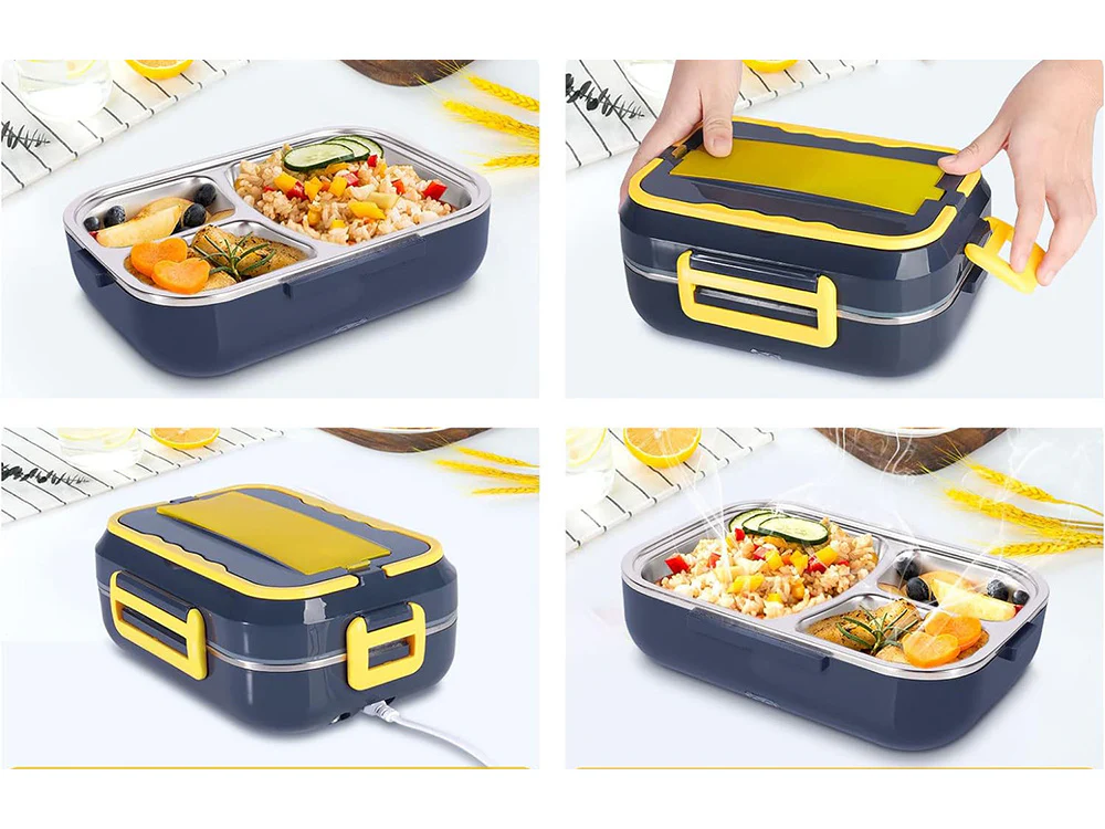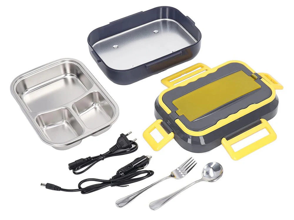 Praktiška elektrinė pietų dėžutė, skirta patogiam maisto šildymui darbo metu ar kelionėse. Tinka naudoti automobilyje ar sunkvežimyje – komplekte yra jungtis į elektros lizdą.